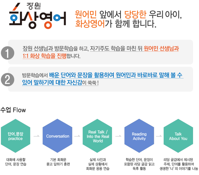| 학습과정 | 학생:A~H 과정, Free Talking / 성인:Speak Out, Free Talking |