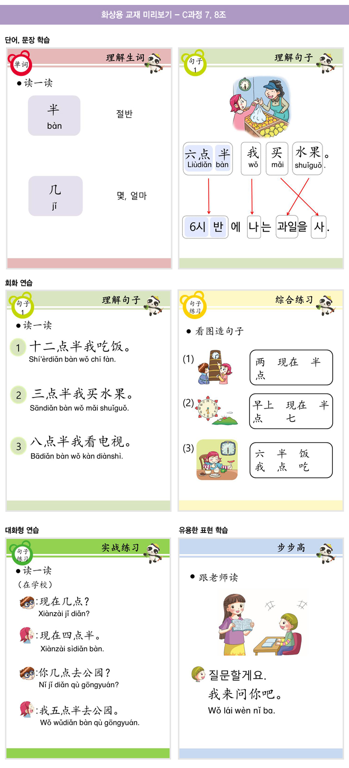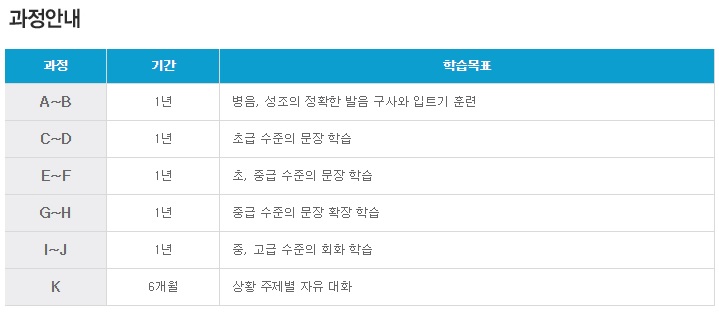 | 학습영역 | 발음, 어휘, 어법, 듣고 말하기, 회화 |