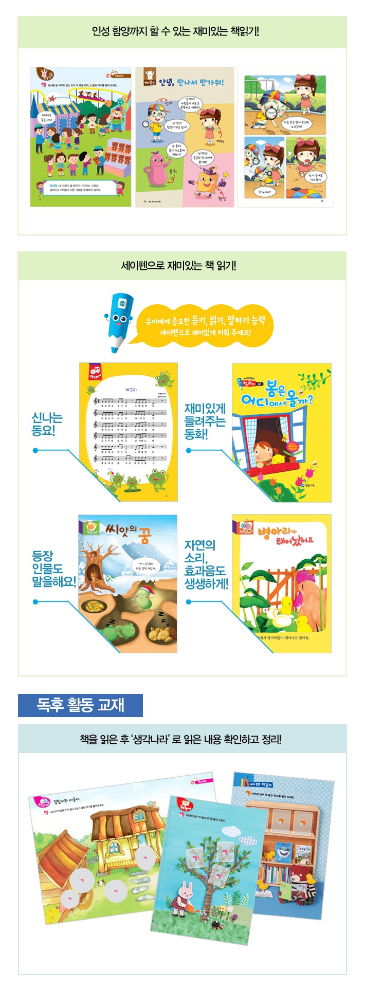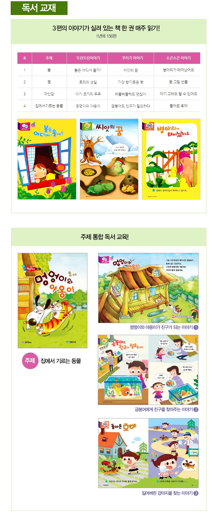 | 교재구성 | 책 읽는 아이듣(읽기 교재)+생각나라(워크북) |