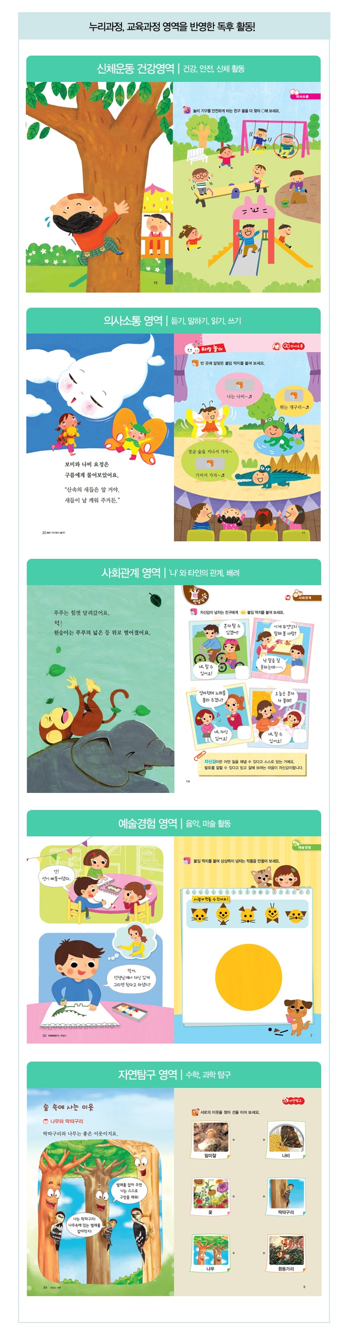 동요를 배우고, 창작 동화, 세계 명작, 학습 만화, 이솝 우화를 읽습니다.