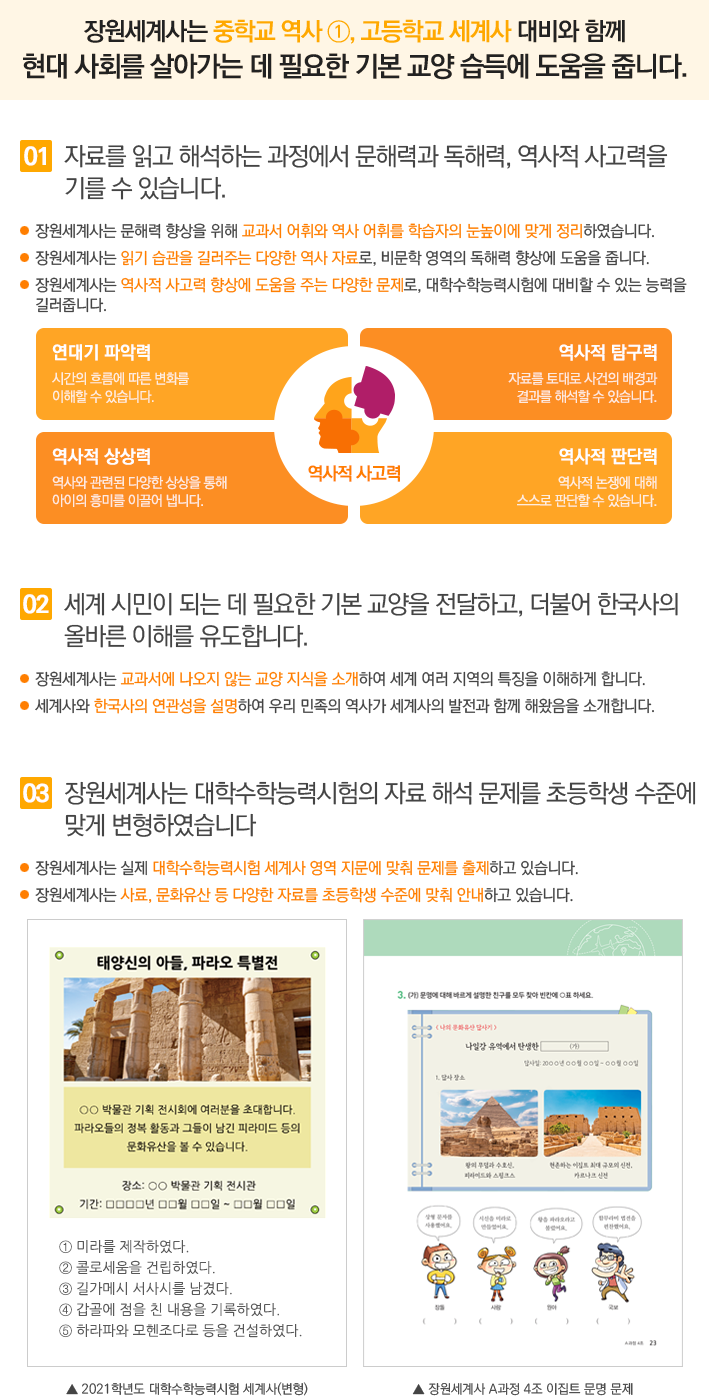 | 학습영역 | 180개 용어, 45개 주제로 세계사의 전반적인 흐름 이해 |